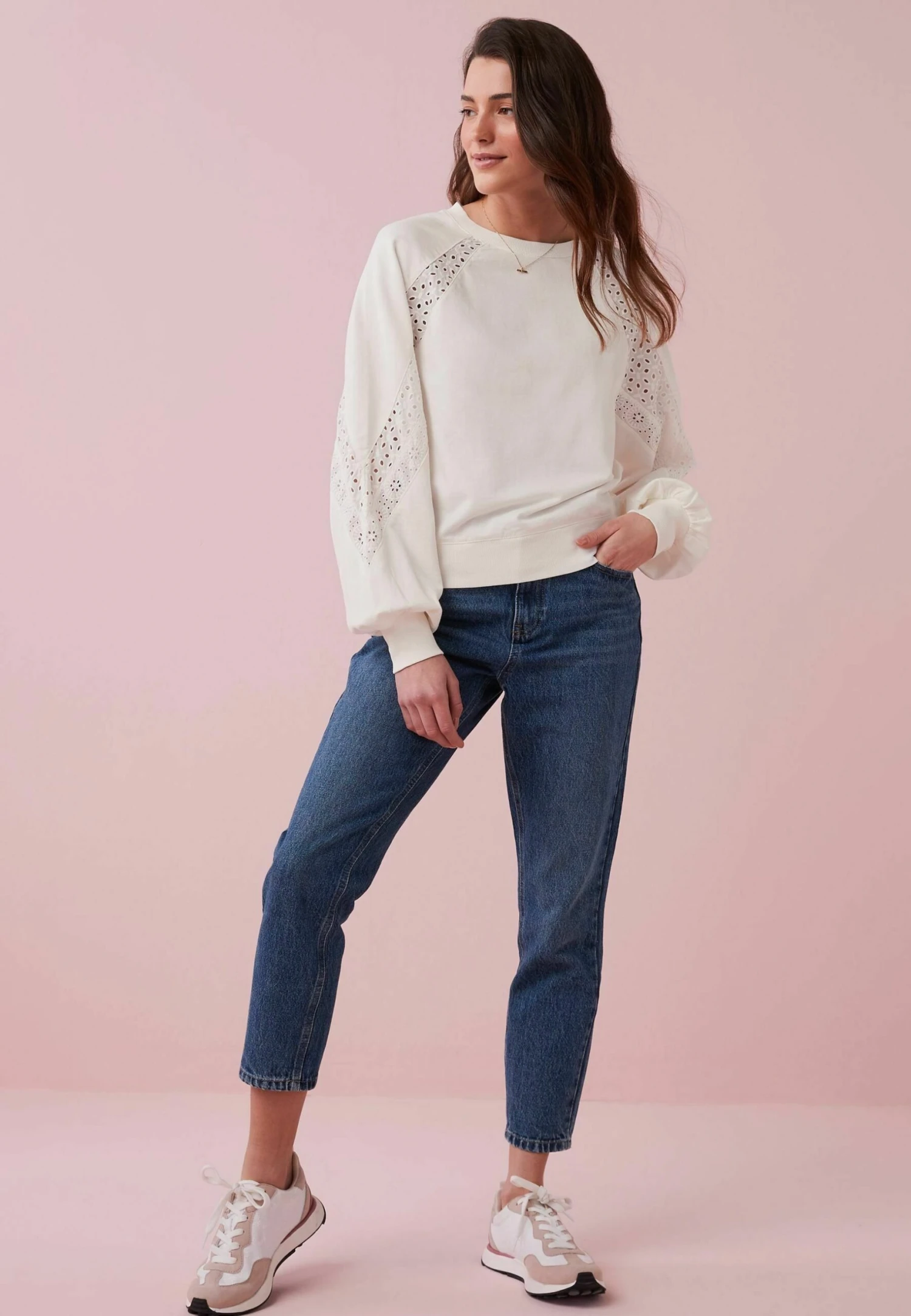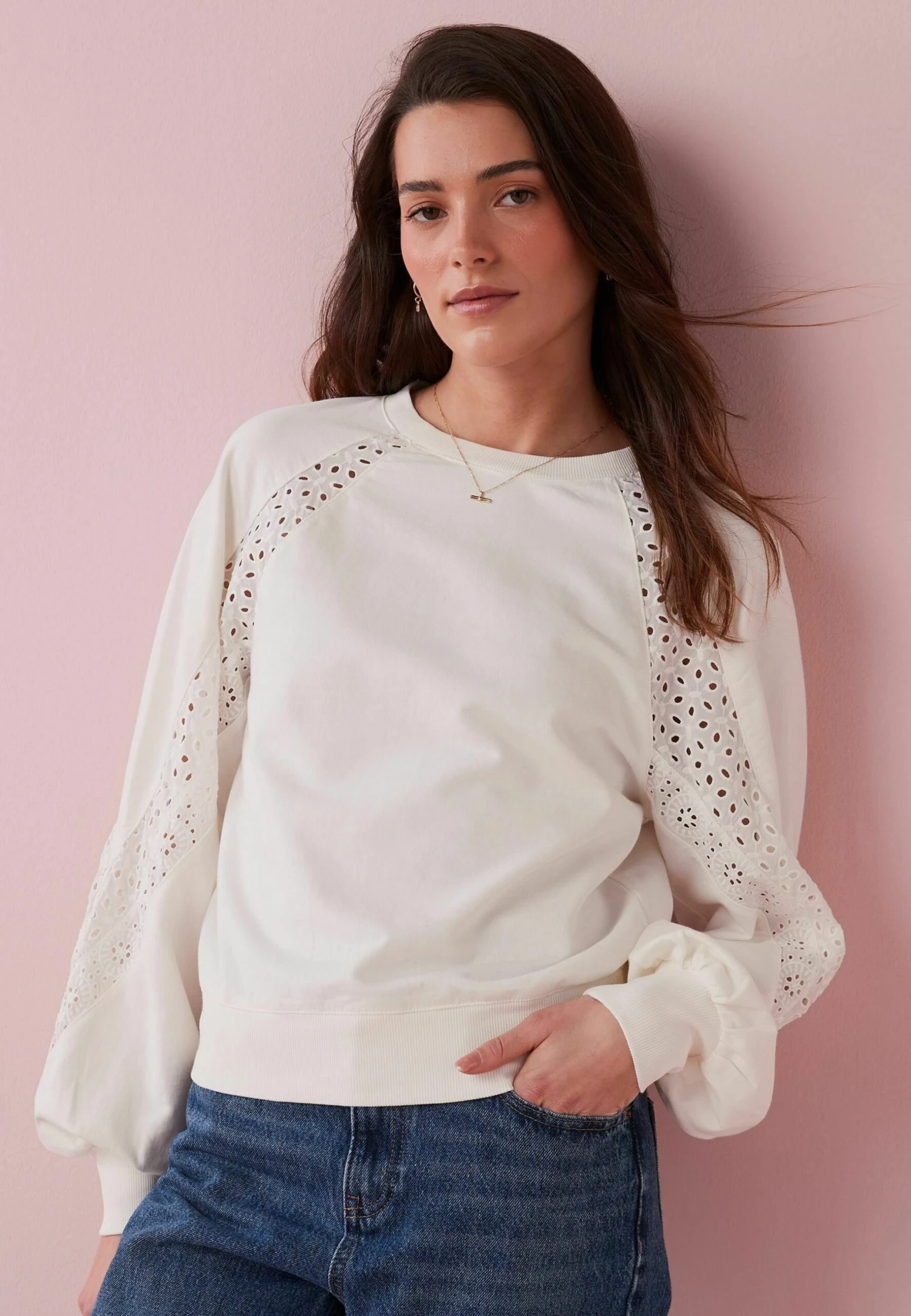 Next Broderie Detail Standard – Sweater – Ecru White