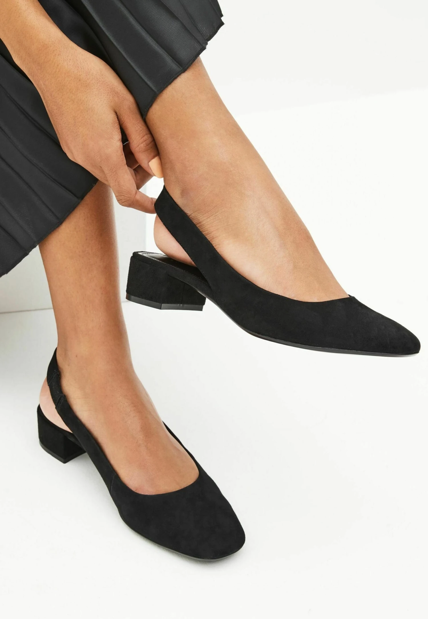 Next Comfort Slingback Low Block Heels – Klassieke Pumps – Black Suede