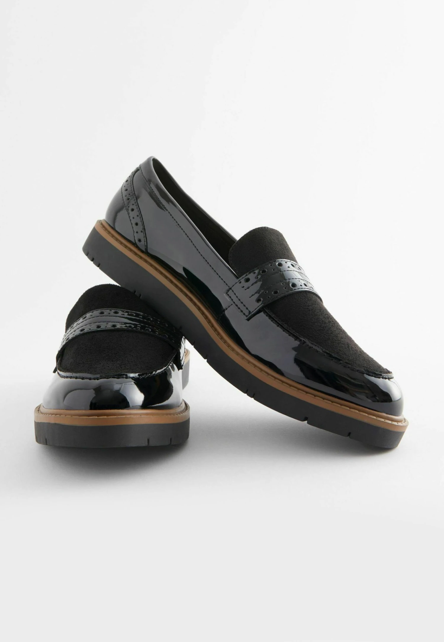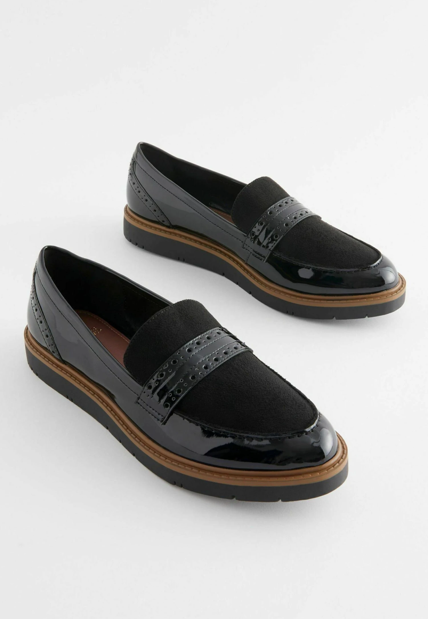 Next Forever Comfort Brogue Detail Chunky Loafers Standard – Mocassins – Black